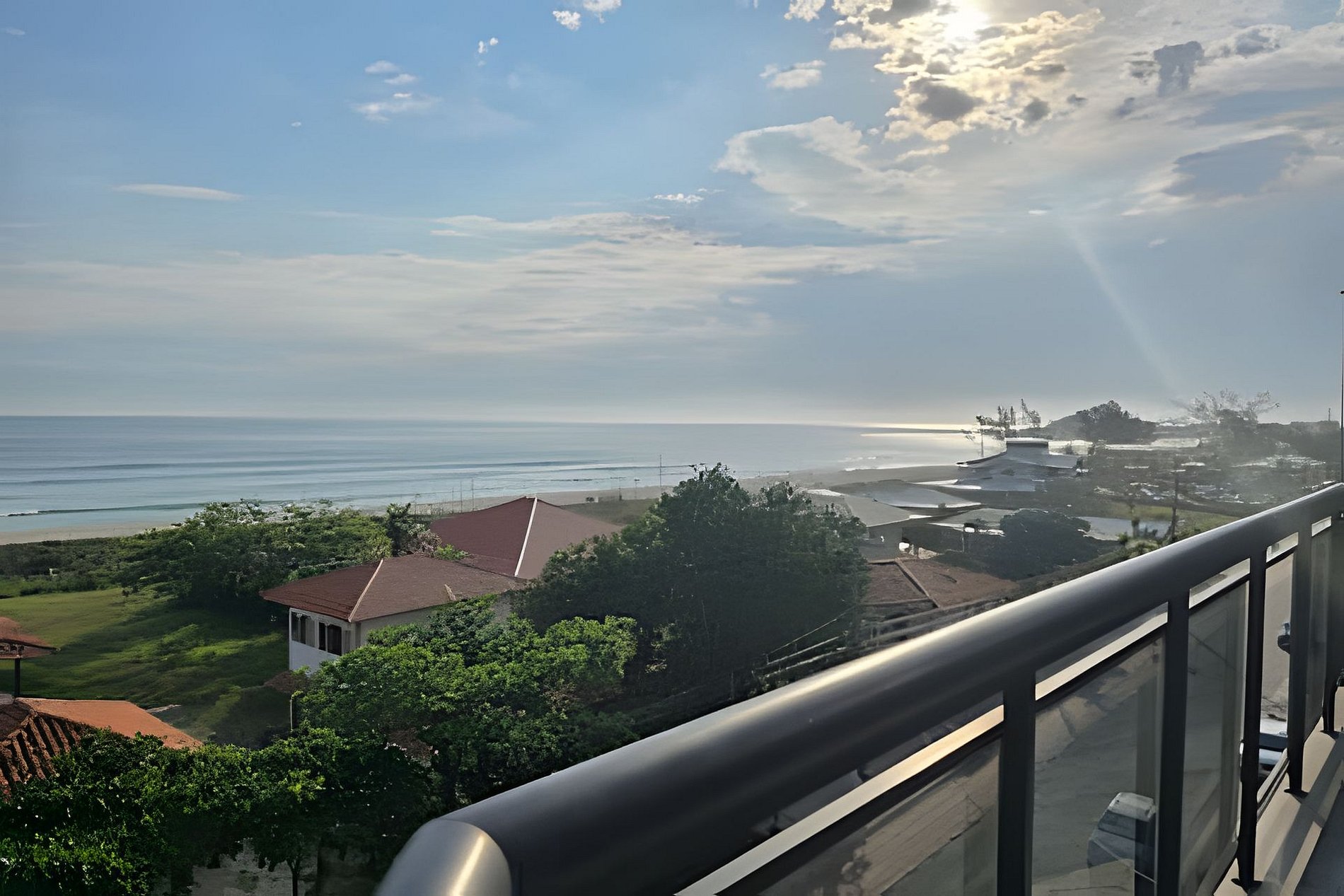 A Vista: Janelas amplas de frente para o mar. Você pode checar as condições do surf ou apreciar o pôr do sol sem sair de casa.