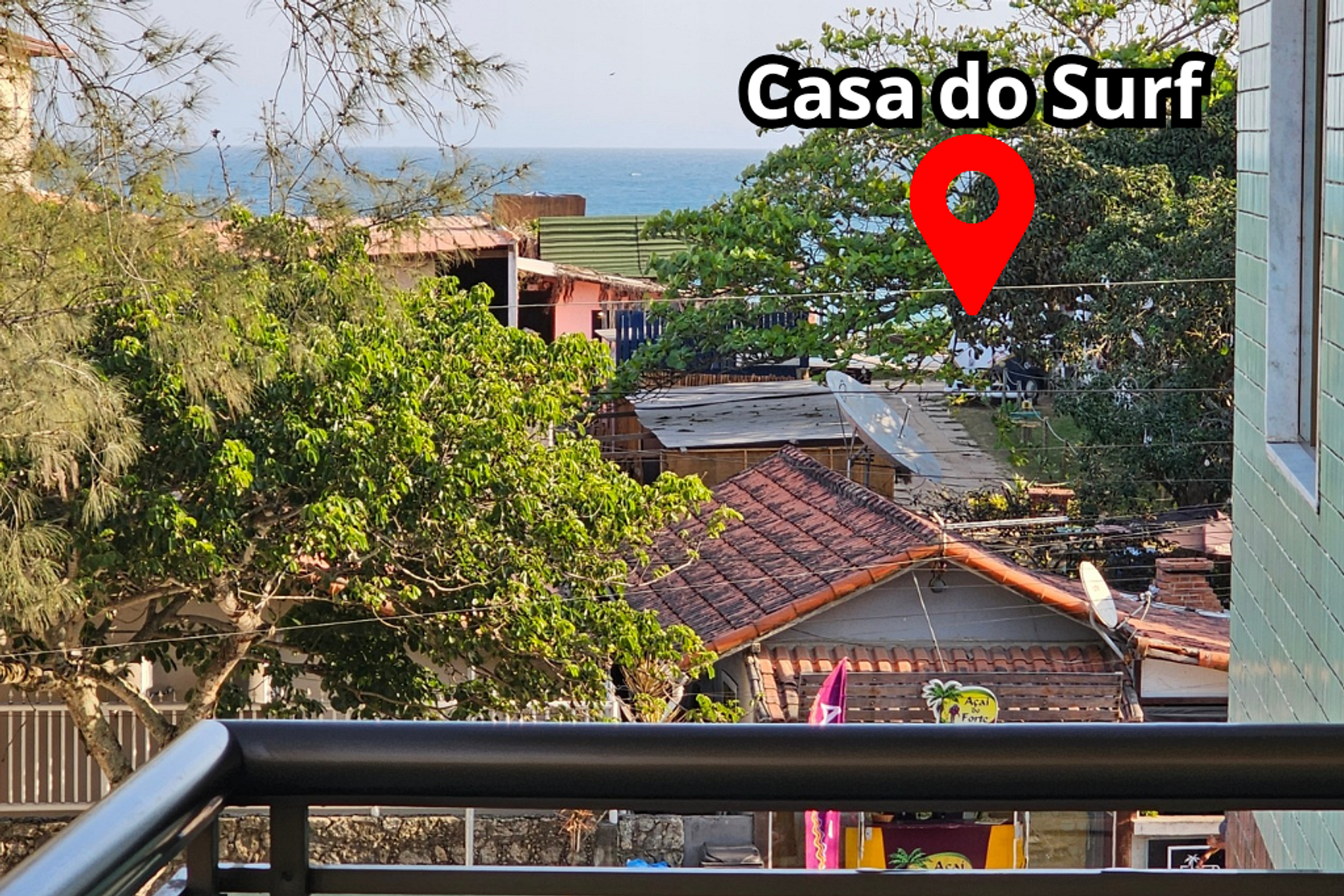Ao sair do condomínio e atravessar a rua, você estará na Casa do Surf, um beach club que oferece opções variadas, desde café da manhã, almoço e drinks, tudo isso com uma vista deslumbrante do pont surf de Itaúna.