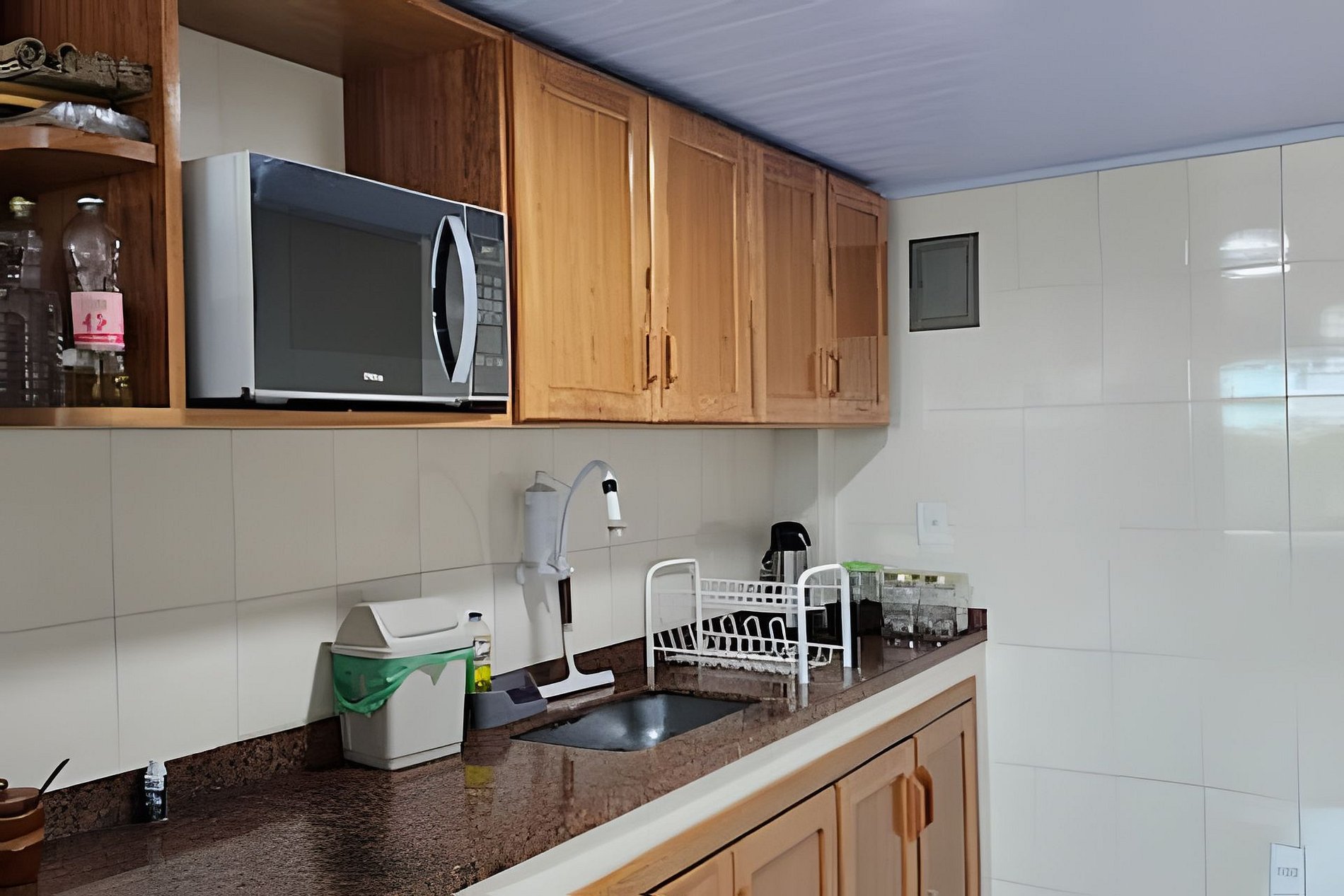 Cozinha equipada: Conta com todos os itens básicos, como talheres, panelas, micro-ondas, vasilhas plásticas, tábua de carnes, kit para churrasco, utensílios para café e garrafa térmica.