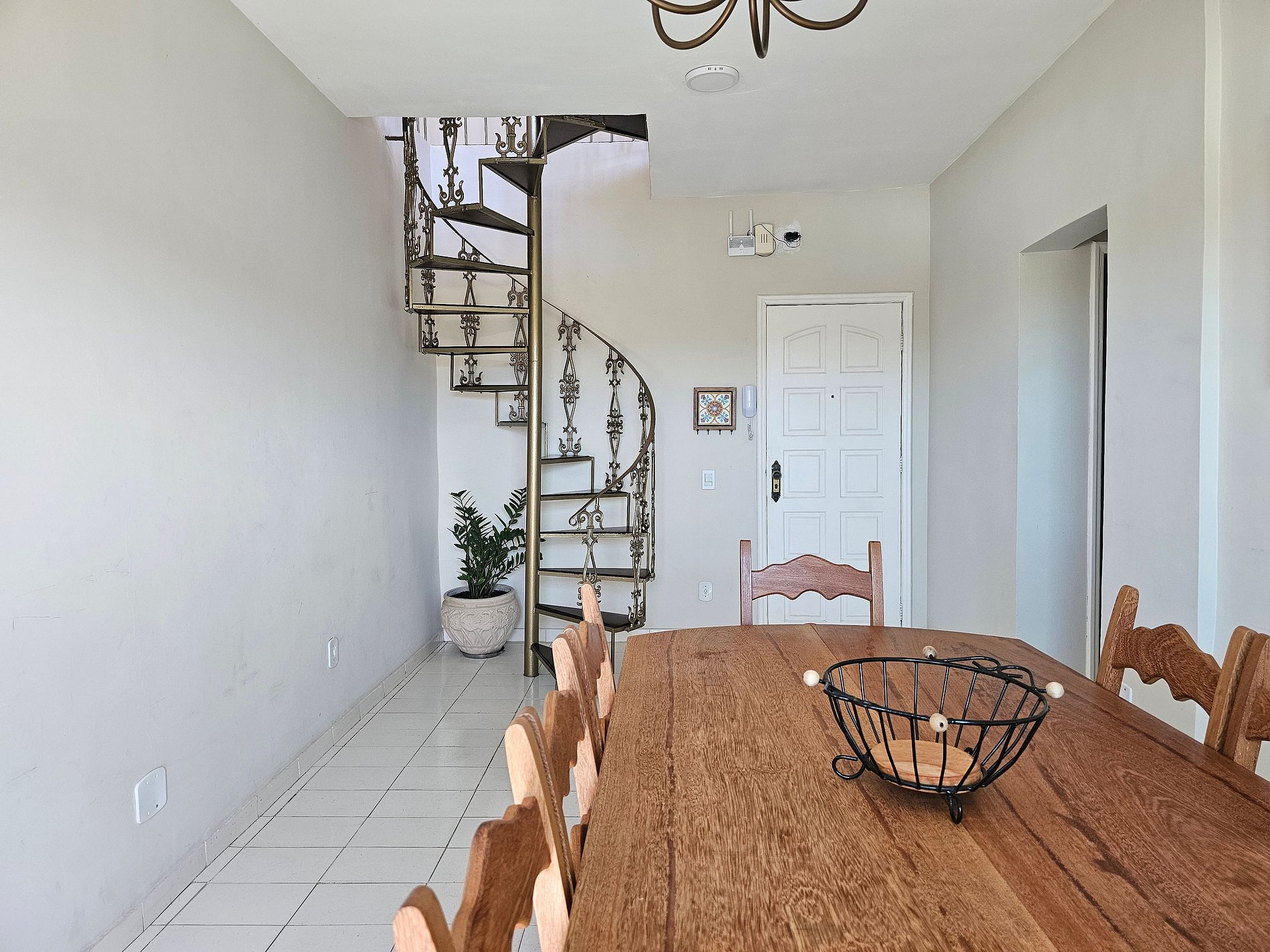 No primeiro andar, você encontra uma cozinha equipada, sala de jantar para 8 pessoas, sala integrada, uma suíte, um quarto, um banheiro social e uma ampla varanda com redes — perfeita para relaxar.