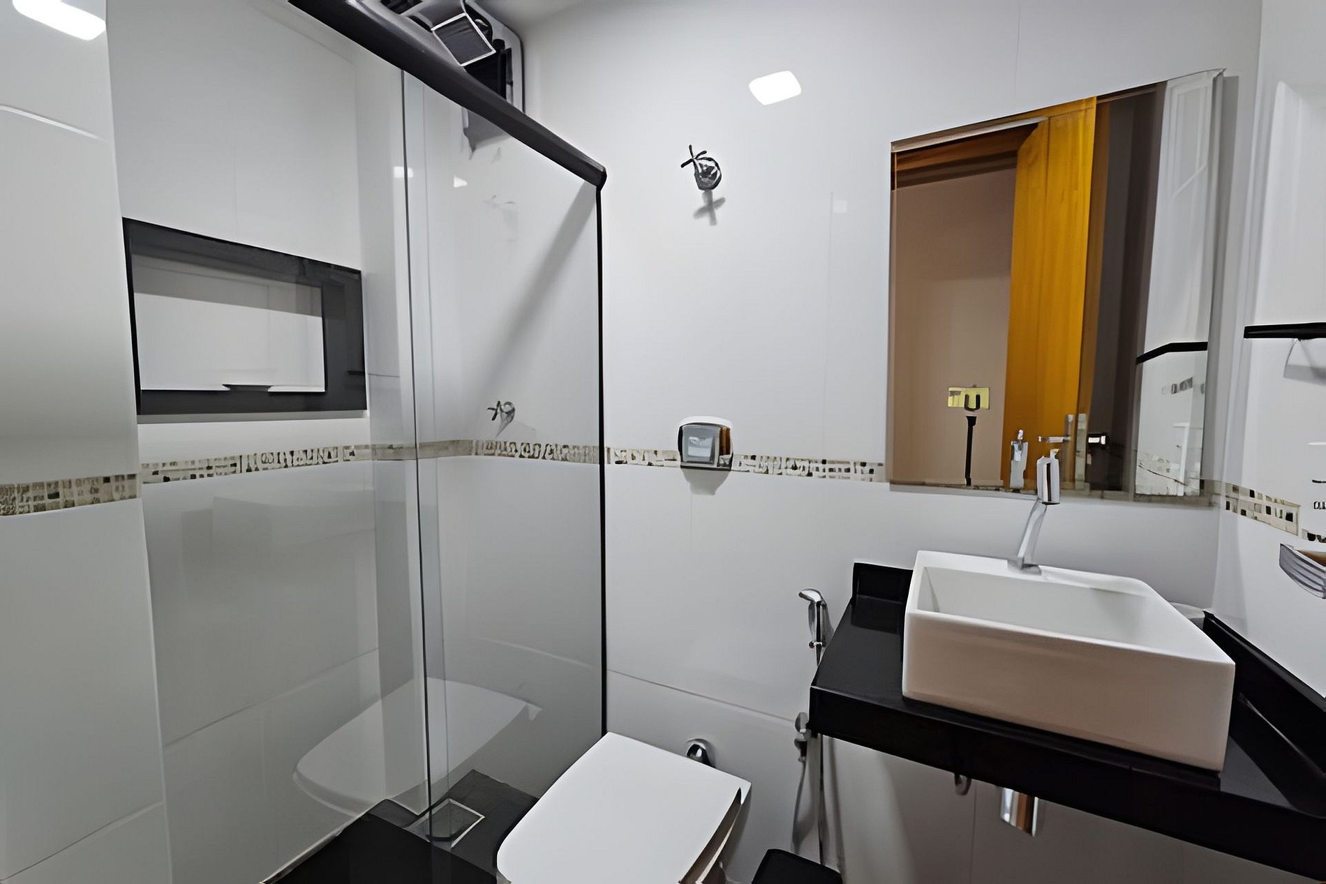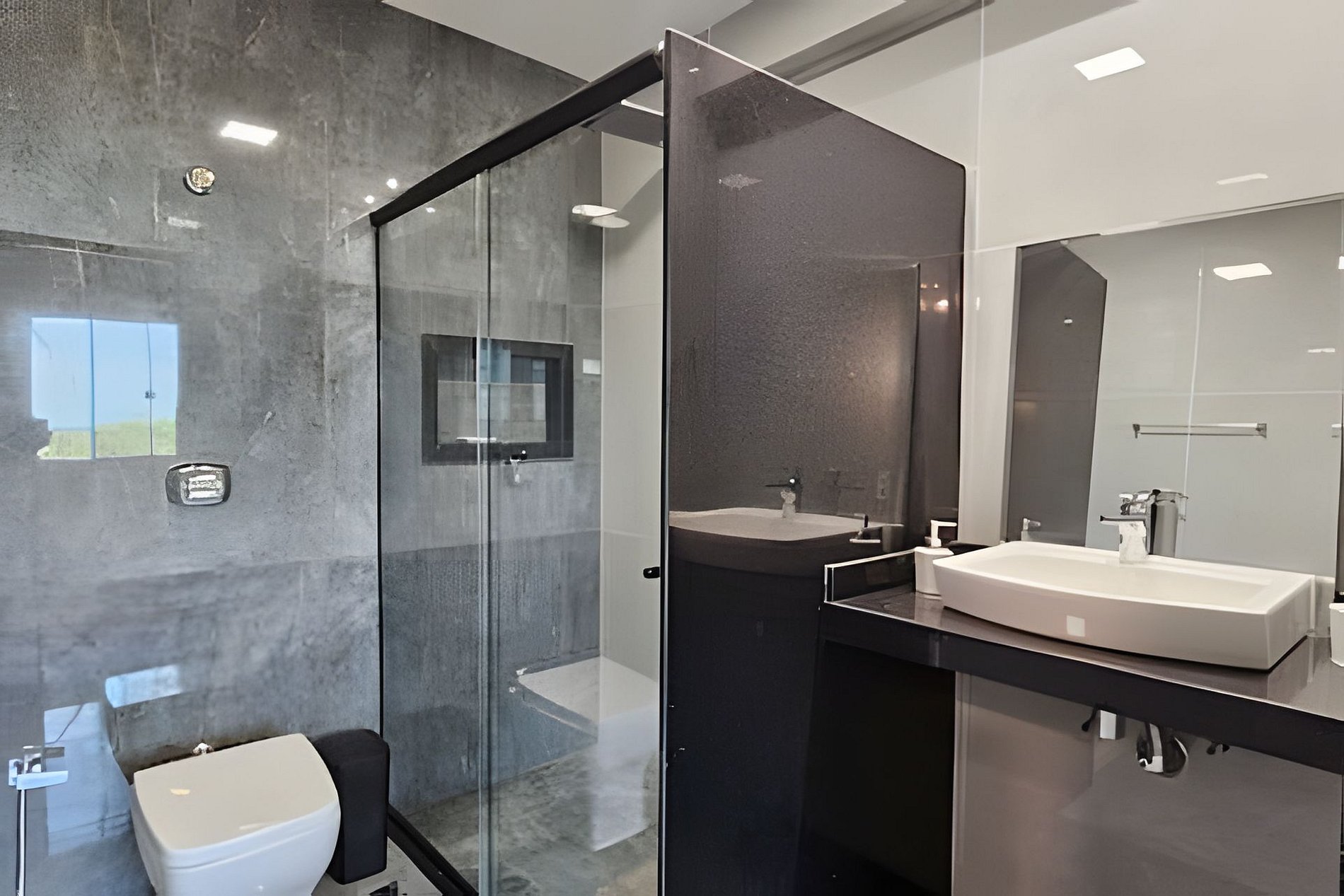 O condomínio oferece uma infraestrutura completa, com elevadores, garagem, chuveirão, e um banheiro no térreo para maior comodidade.